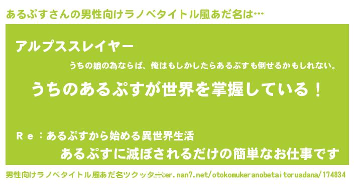 | 女子向けラノベタイトル風あだ名 | 『男装あるぷすの憂鬱な任務』 |
