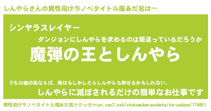 | ヒーロー風カッコイイあだ名 | 『仮面シンダー』『暗黒騎士シン』 |