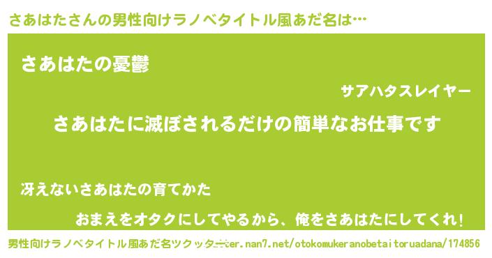 さあはたさんの男性向けラノベタイトル風あだ名をツクッター!