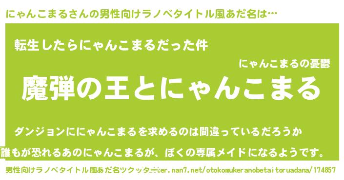 | 女子向けラノベタイトル風あだ名 | 『にゃんこまるが死なない童話 林檎のにゃんこまるの診療簿』 |