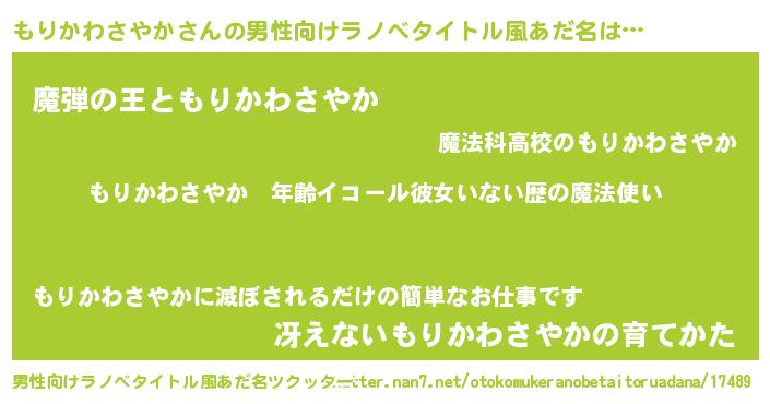 | 女子向けラノベタイトル風あだ名 | 『もりかわさやかの玉の輿計画!』 |
