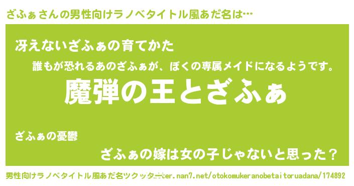 | ヒーロー風カッコイイあだ名 | 『仮面ザフダー』『銀牙騎士ザフ』 |
