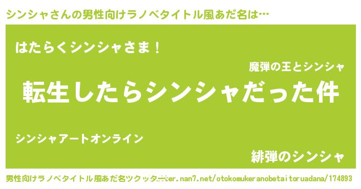 | ヒーロー風カッコイイあだ名 | 『仮面シンダー』『スーパーシンシャ』 |