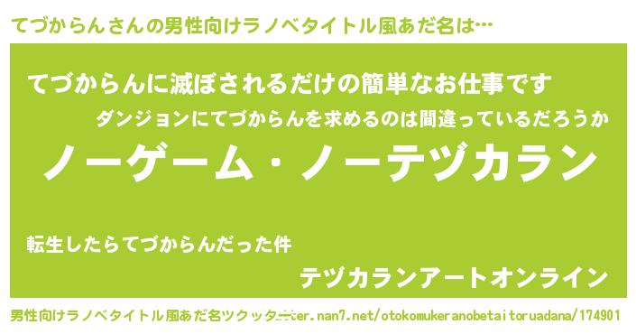 | 女子向けラノベタイトル風あだ名 | 『死神てづからんの再婚』 |