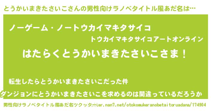 | 欧米人風あだ名 | 『アンジェラ・とうかいまきたさいこ』 |