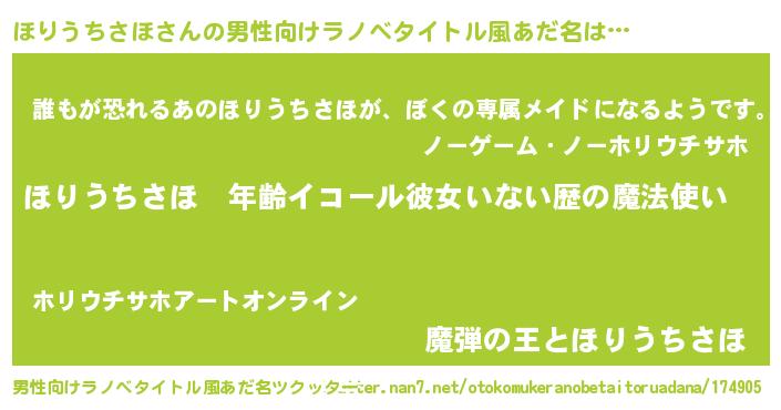 | 女子向けラノベタイトル風あだ名 | 『ほりうちさほの玉の輿計画!』 |