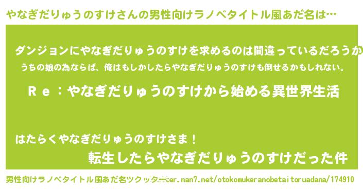 | 意味不明あだ名 | 『自称やなぎだりゅうのすけ』 |
