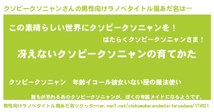 | 意味不明あだ名 | 『住所不定無職クソピークソニャン(62歳)』 |