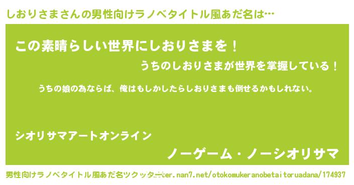 | 意味不明あだ名 | 『しおりさまフォーエバー』 |