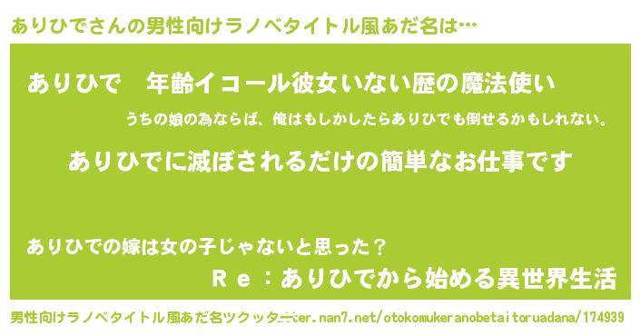 | 胡散臭い通販商品みたいなあだ名 | 『テレビで話題のアガリクス…その名も「ありひで」』 |