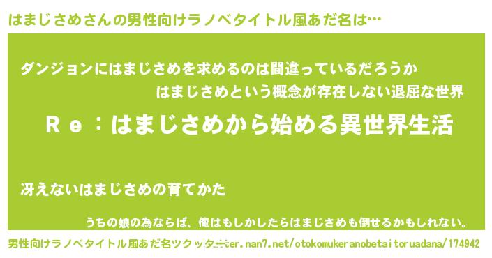| 女子向けラノベタイトル風あだ名 | 『闇のはまじさめ』 |