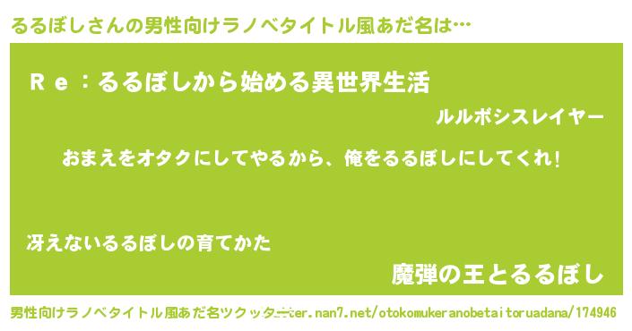 | 女子向けラノベタイトル風あだ名 | 『るるぼし夫妻のなれそめ』 |