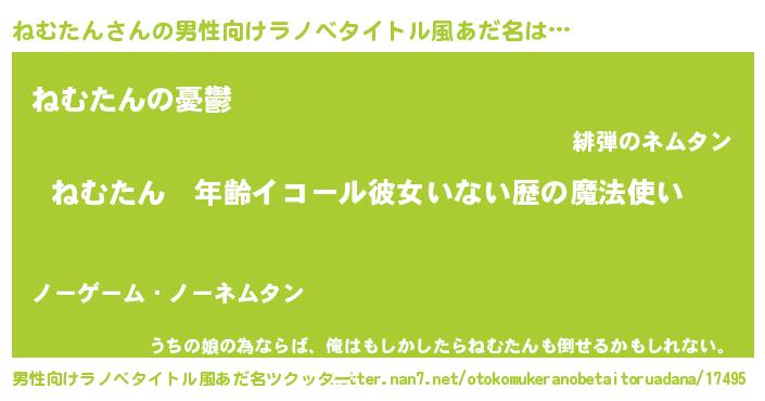 | 胡散臭い通販商品みたいなあだ名 | 『億万長者になれる霊験あらたかなお札…その名も「ねむたん」』 |