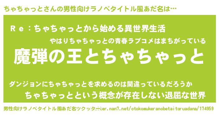 | 胡散臭い通販商品みたいなあだ名 | 『ハリウッド女優が絶賛した100年もののヴィンテージワイン…その名も「ちゃちゃっと」』 |