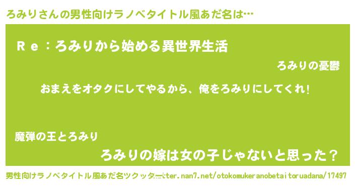 | ヒーロー風カッコイイあだ名 | 『正義の使者ろみり』『最強戦士ロミリ』 |