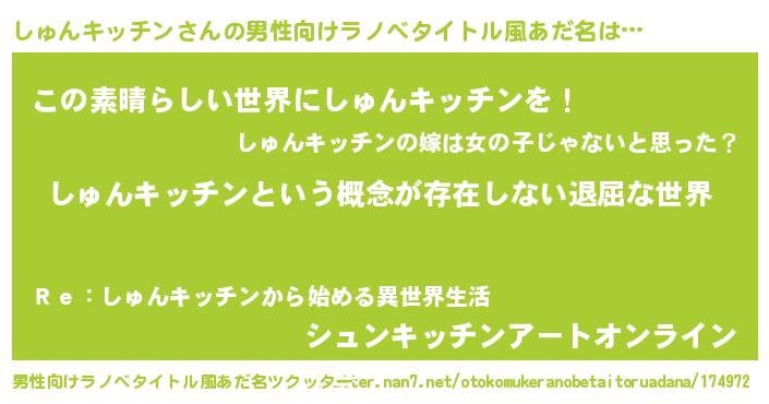 | 伝説のあだ名 | 『古より伝わる吟遊詩人しゅんキッチン』 |