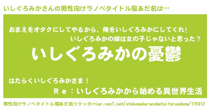 | 女子向けラノベタイトル風あだ名 | 『(仮)いしぐろみかのやんごとなき事情』 |