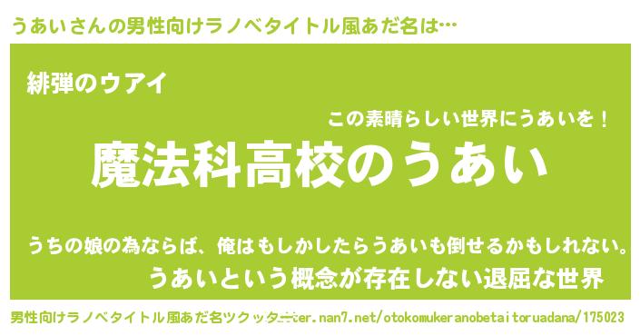 | 意味不明あだ名 | 『自称うあい』『永久保存うあい』 |