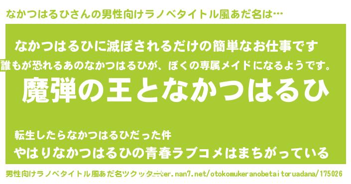 | 女子向けラノベタイトル風あだ名 | 『なかつはるひが死なない童話 林檎のなかつはるひの診療簿』 |