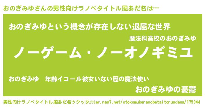| ヒーロー風カッコイイあだ名 | 『慈愛の使者おのぎみゆ』『幻影騎士オノ』 |
