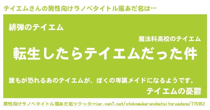 | 意味不明あだ名 | 『もやし科テイエム属』『自称テイエム』 |