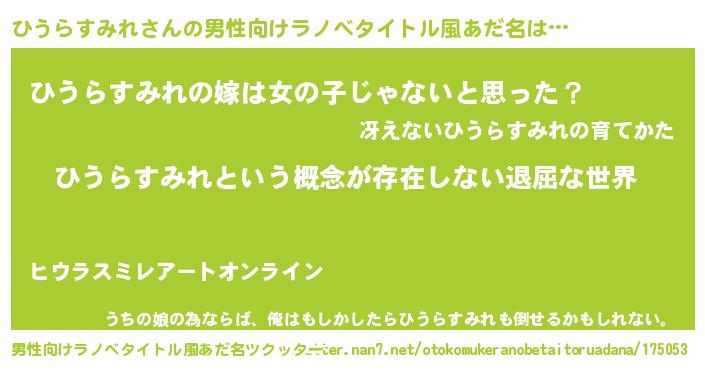 | 胡散臭い通販商品みたいなあだ名 | 『来世でも幸せになれる健康食品…その名も「ひうらすみれ」』 |