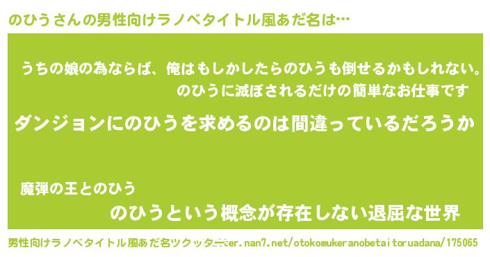 | ヒーロー風カッコイイあだ名 | 『暗黒騎士ノヒ』『ウルトラのひうマン』 |