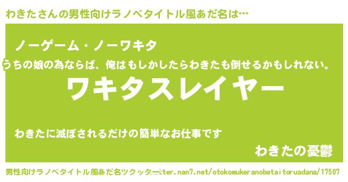 | ヒーロー風カッコイイあだ名 | 『正義の使者わきた』『スーパーワキタ』 |