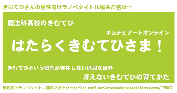 | 女子向けラノベタイトル風あだ名 | 『首の姫と首なしきむてひ』 |