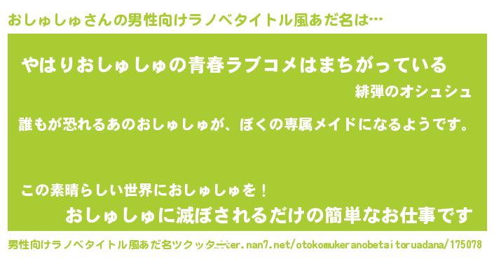 | 女子向けラノベタイトル風あだ名 | 『異世界でカフェおしゅしゅを開店しました。』 |