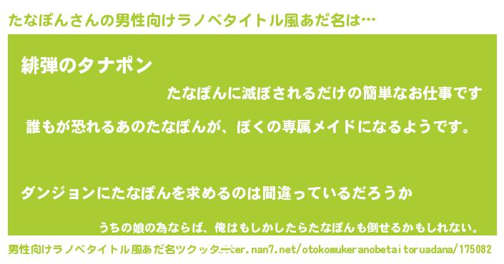| 意味不明あだ名 | 『永久保存たなぽん』『自称たなぽん』 |