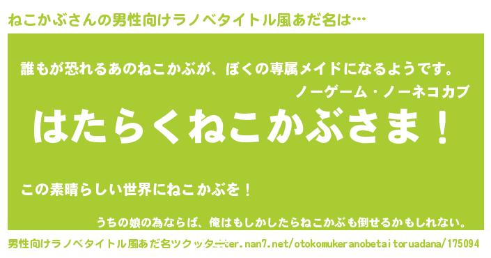| 胡散臭い通販商品みたいなあだ名 | 『絶対に幸福をもたらす健康食品…その名も「ねこかぶ」』 |