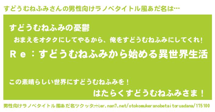 | 意味不明あだ名 | 『自称すどうむねふみ』 |
