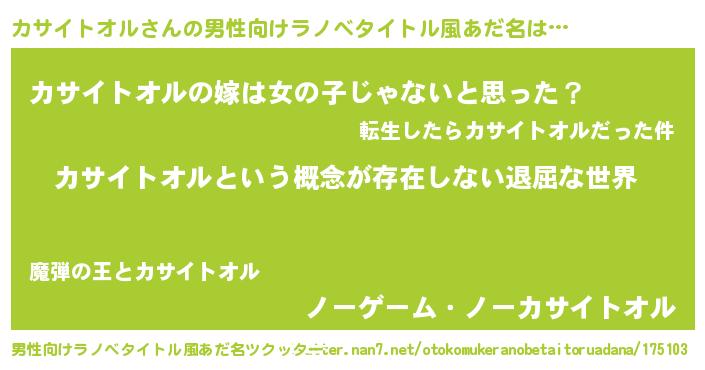 | 女子向けラノベタイトル風あだ名 | 『カサイトオルの契約王妃』 |