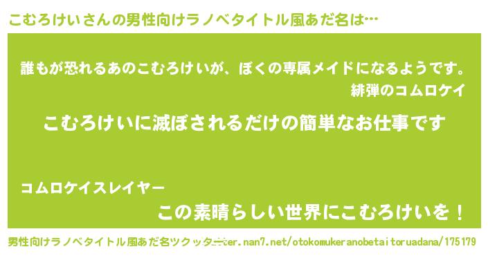 | ヘコむあだ名 | 『こむろけい(笑)』『こむっぺ』 |