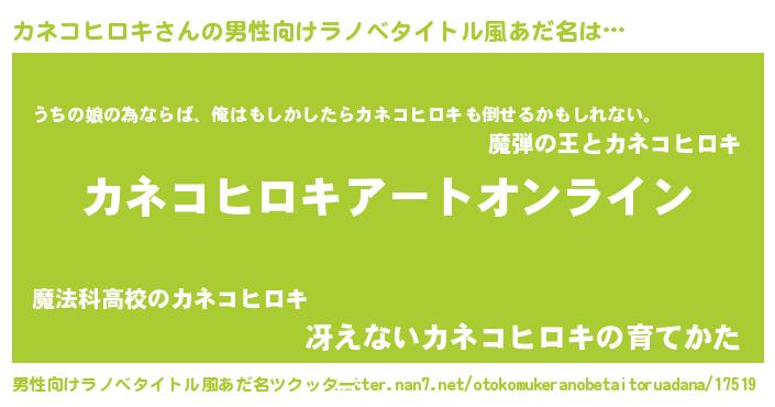 | 胡散臭い通販商品みたいなあだ名 | 『億万長者になれるブレスレット…その名も「カネコヒロキ」』 |