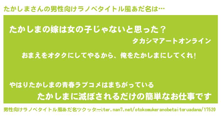 | 女子向けラノベタイトル風あだ名 | 『たかしま夫妻のなれそめ』 |
