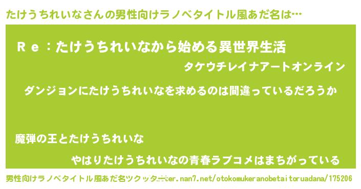 | 女子向けラノベタイトル風あだ名 | 『たけうちれいなは平凡を望む』 |