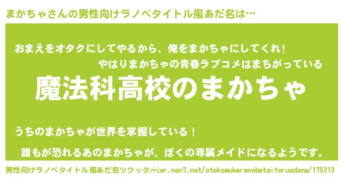 | 女子向けラノベタイトル風あだ名 | 『まかちゃアンティーク』 |