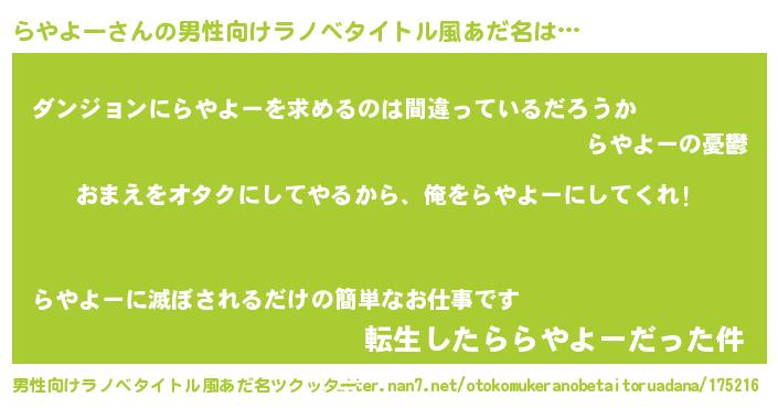 | ヘコむあだ名 | 『らやぷりん』『らやふぇ~』 |
