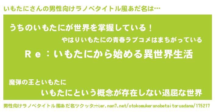 | 女子向けラノベタイトル風あだ名 | 『闇のいもたに』『いもたにの契約王妃』 |