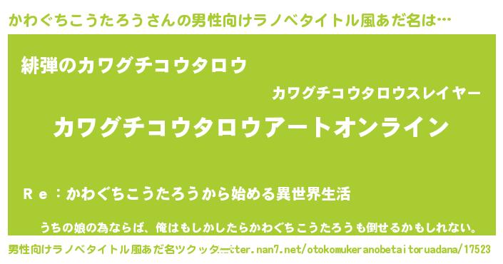| 女子向けラノベタイトル風あだ名 | 『誰かこのかわぐちこうたろうを説明してください! ~契約から始まるウェディング~』 |