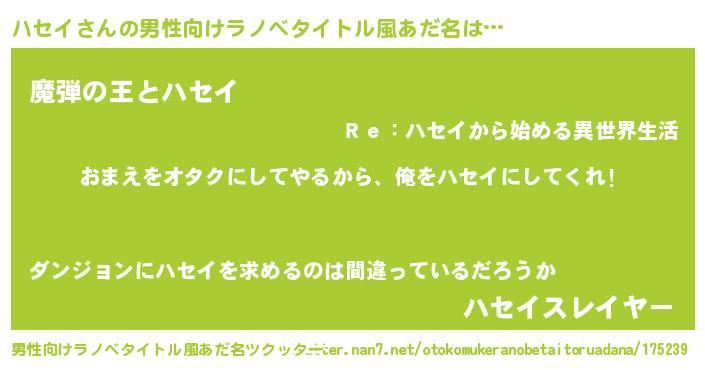 | ヒーロー風カッコイイあだ名 | 『正義の使者ハセイ』『仮面ハセダー』 |