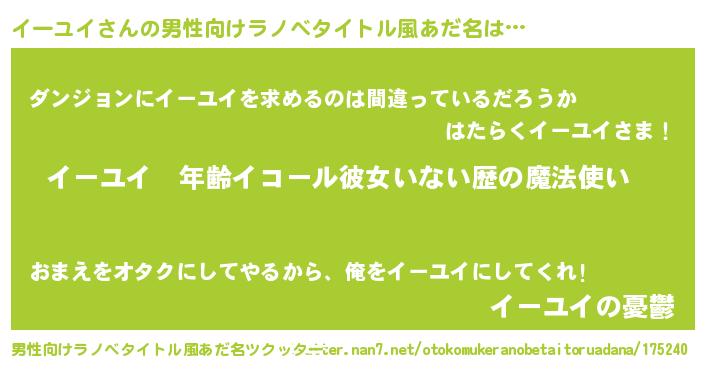 | 女子向けラノベタイトル風あだ名 | 『イーユイの玉の輿計画!』 |