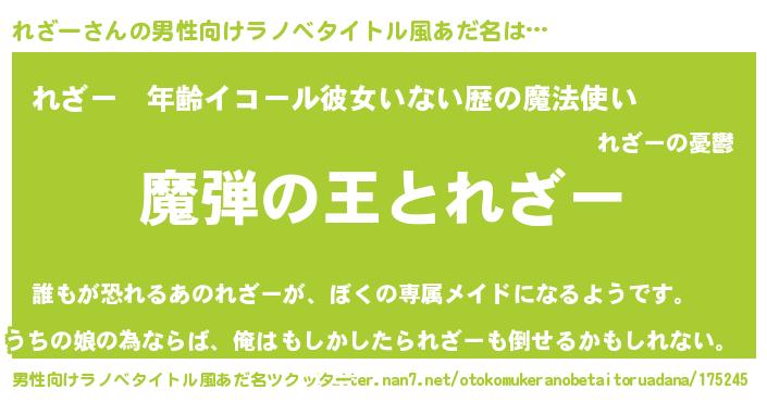 | 意味不明あだ名 | 『住所不定無職れざー(41歳)』 |