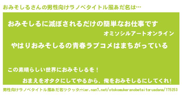 | 女子向けラノベタイトル風あだ名 | 『おみそしるの雑貨屋さん』 |