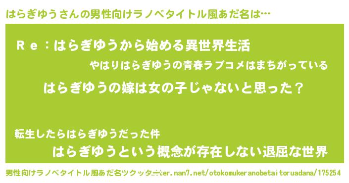 | ヘコむあだ名 | 『はらっぺ』『はらぎゆう(小並感)』 |