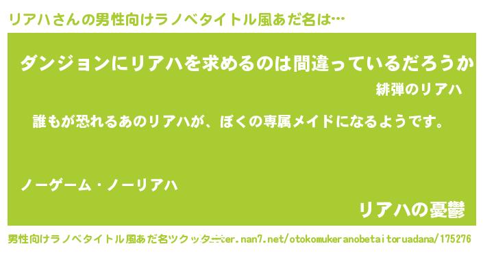 | ヒーロー風カッコイイあだ名 | 『ネオリアハ』『暗黒騎士リア』 |
