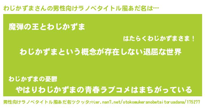 | 女子向けラノベタイトル風あだ名 | 『異世界で失敗しない100のわじかずま』 |