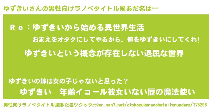 | ファンタジー風あだ名 | 『ユズディッシュ』『ゼユズトゥ』 |